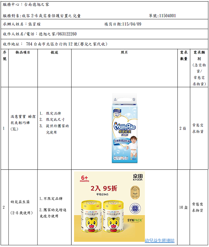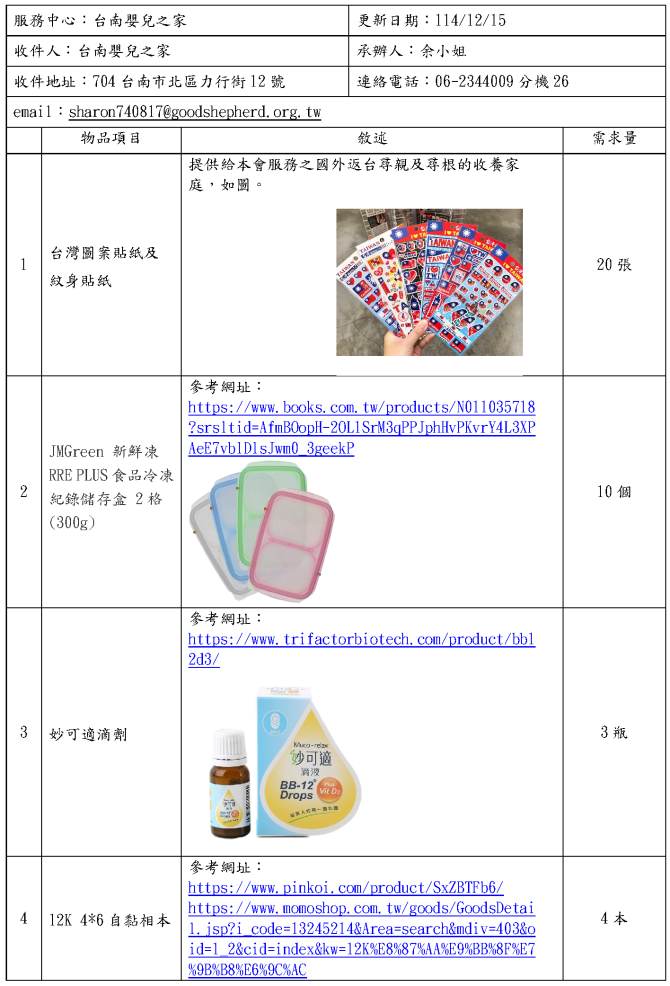 送件地址:704台南市北區力行街12號台南嬰兒之家收